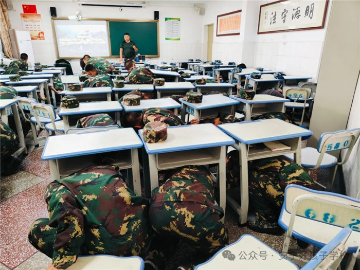 緊接著,進行避震和逃生演練。當?shù)谝宦暰瘓筲忢懫穑瑢W(xué)們立即采取緊急避震措施,護住頭部和頸部,躲到課桌下面,降低身體重心,確保自身安全,整個過程快速、有序。