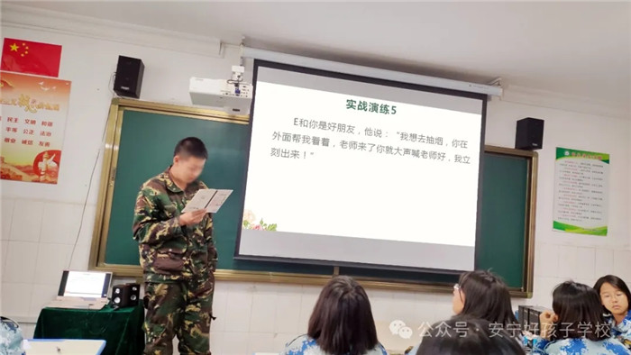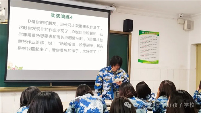 緊接著,張老師首先讓孩子們理解“和而不同”的內(nèi)涵,讓孩子們明白在人與人的相處中,既應當尊重他人的需求與愿望,同時也要堅守個人的界限與原則,清晰界定個人的能力范圍與心理舒適區(qū),避免過度犧牲自我導致的疲憊與不滿。然后通過“如何在拒絕中實踐‘和而不同’案例”,給孩子們傳授了“拒絕寶典”的精髓。