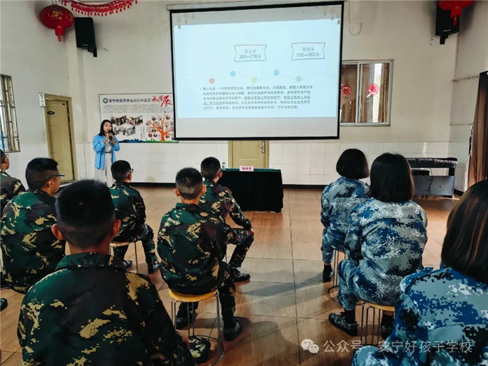 為進(jìn)一步增強(qiáng)未成年人法治觀念,提高孩子們的自我保護(hù)意識(shí)。2024年8月9日,我校邀請(qǐng)寧湖律師事務(wù)所楊曉艷律師為師生們開(kāi)展預(yù)防未成年人犯罪普法講座。