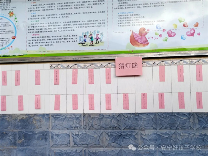 老師們精心挑選了百余條燈謎,妙趣橫生的謎面涵蓋成語典故、民俗文化、地理知識、科普知識等,既有娛樂性,又具知識性。孩子紛紛“組團”猜謎,時而苦思冥想,時而三三兩兩一起竊竊討論,你一言、我一語地互相推敲商議,一條條謎底被紛紛猜中,大家喜笑顏開,興高采烈地爭相領(lǐng)取小禮品……