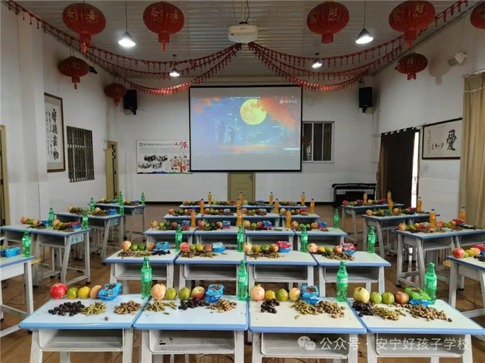 千燈萬盞,不敵一輪明月寄相思。晚宴后,全體師生齊聚多功能教室,一邊品嘗學(xué)校精心準(zhǔn)備的月餅、水果、板栗、花生、毛豆等,一邊觀看精彩紛呈的中秋晚會,相互分享生活中的趣事,歡聲笑語在空氣中彌漫。