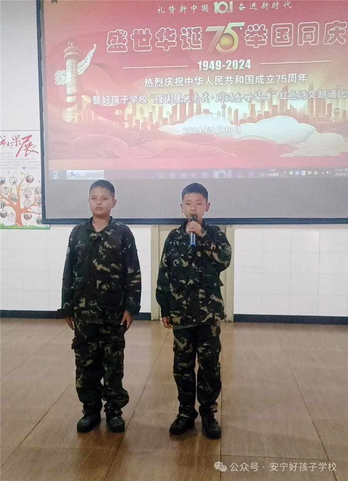 聆聽紅色之聲,感受誦讀之美。本次比賽既是向祖國母親75周年華誕的一次獻禮,也是一次心靈的洗禮,更是對歷史的傳承和對文化的弘揚,它深深地喚起了我們的民族自豪感和責任感。青春中國,步履不息。新時代同心逐夢,新征程凱歌以行。藍圖已經繪就,奮進正當其時。好孩子學校將以此次活動為契機,用實際行動詮釋教育情懷,培育愛黨愛國初心,以更加飽滿的熱情秉承“改變一個孩子,幸福一個家庭,和諧一個社會”的宗旨,踐行“尊重、激勵、鞭策、喚醒”的教育理念,加滿油,把穩(wěn)舵,鼓足勁,用“奮斗筆”擎畫“幸福卷”,種好專門教育的責任田,幫助更多的孩子健康成長,助力教育共富,共同書寫新時代的輝煌篇章。