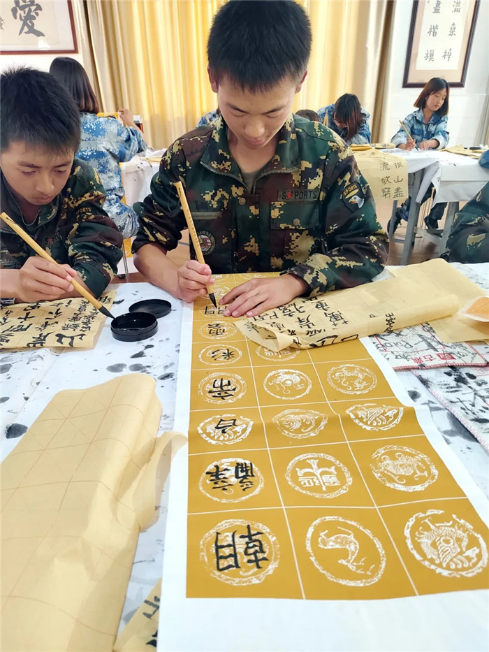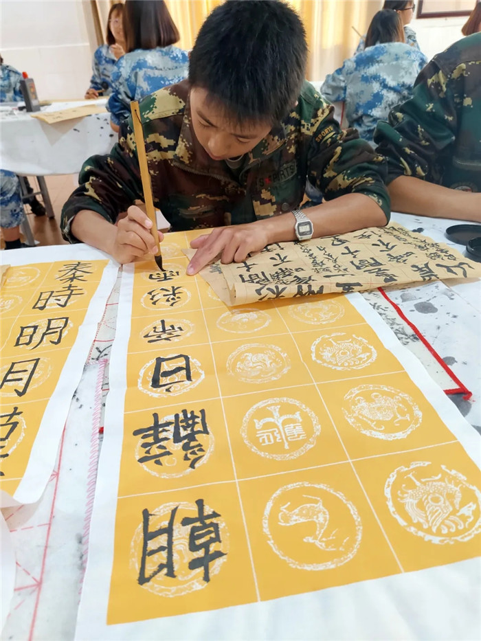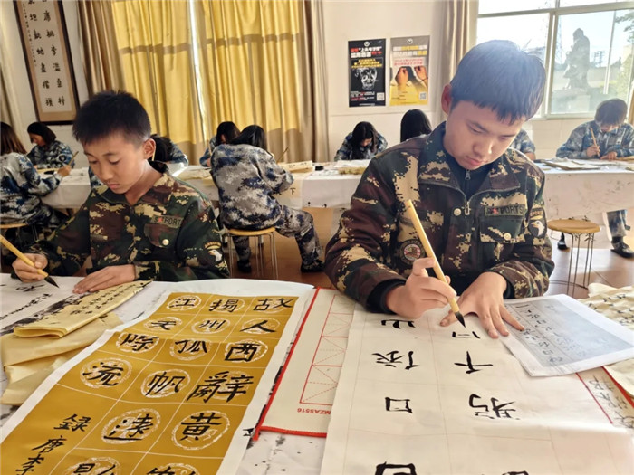 蘸墨、提筆,每一個筆畫的起始、轉(zhuǎn)折、收筆,都傾注著孩子們的情感與思考。很快,一幅幅佳作便呈現(xiàn)眼前,或豪放灑脫,如大江奔騰;或婉約細膩,似小橋流水;或剛勁有力,如蒼松挺立;或飄逸靈動,似白云出岫。墨香在空氣中彌漫,與孩子們的專注神情相互交融。那提按頓挫之間,不僅僅是線條的勾勒,而是力量與柔美的完美結合,更是情感的傾訴,以及心靈與文化的深度對話。