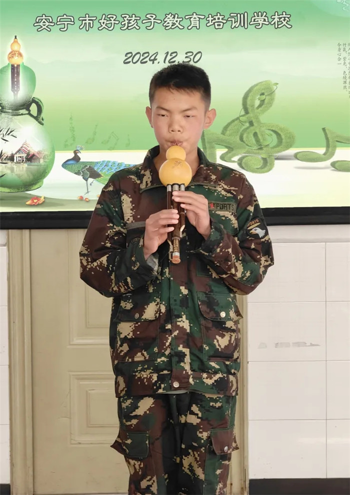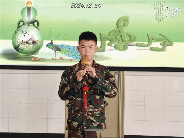 為弘揚民族音樂文化,提升學生藝術素養(yǎng),2024年12月30日,在學校多媒體教室里,一場葫蘆絲比賽如同一幅絢麗多彩的畫卷徐徐展開。