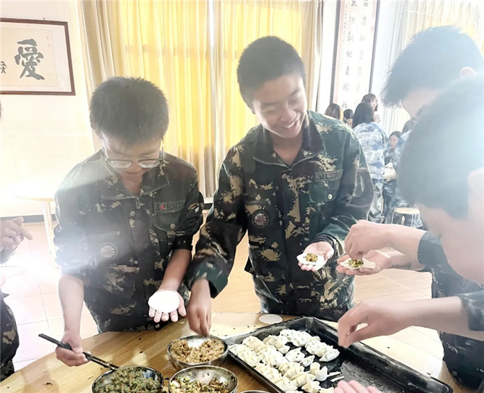 下午三點(diǎn),活動在學(xué)校多功能廳舉行。食堂廚師們把餃子餡調(diào)好后,各班主任和同學(xué)們就一起開心地包起了餃子。老師們一會兒做“督導(dǎo)員”,一會兒捋起袖子加入到包餃子的強(qiáng)大陣營中,師生同樂的暖意沁人心脾。