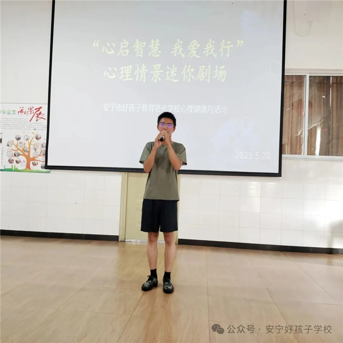 “情緒猜猜猜”活動里,“激動”“焦慮”“嫉妒”等10種情緒成為“主角”。同學(xué)們踴躍上臺,用極具感染力的肢體語言和生動表情,將不同情緒演繹得淋漓盡致。臺下同學(xué)不僅要精準(zhǔn)判斷情緒類型,還要大膽推測對應(yīng)場景。有的把 “考前找不到準(zhǔn)考證”時的慌亂焦慮演繹得惟妙惟肖,有的將“被沒收手機”后的委屈憤怒詮釋得入木三分。熱烈的互動與歡笑聲中,孩子們不僅鍛煉了敏銳的觀察力,也學(xué)會精準(zhǔn)識別情緒、共情他人,更讓他們懂得:情緒并無對錯之分,學(xué)會接納與合理釋放才是心靈健康的關(guān)鍵。