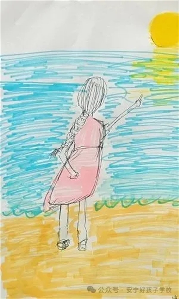 畫(huà)作完成后,一場(chǎng)充滿真誠(chéng)與溫暖的分享會(huì)隨之展開(kāi)。孩子們手持畫(huà)作,紛紛主動(dòng)走上講臺(tái),或靦腆或激昂地講述作品背后的故事與情感。每一幅畫(huà)都是一段獨(dú)特的心靈獨(dú)白,每一次分享都拉近了彼此的心靈距離。