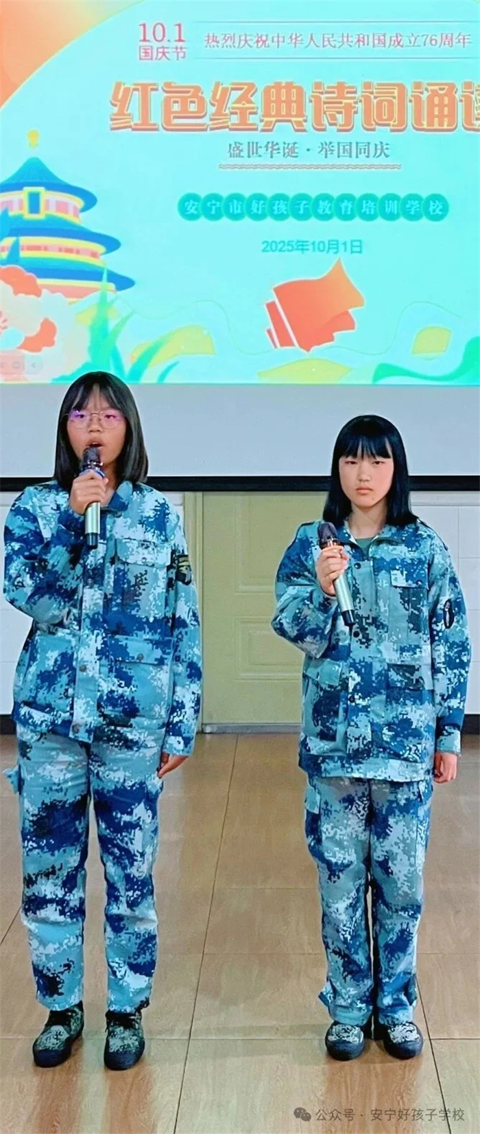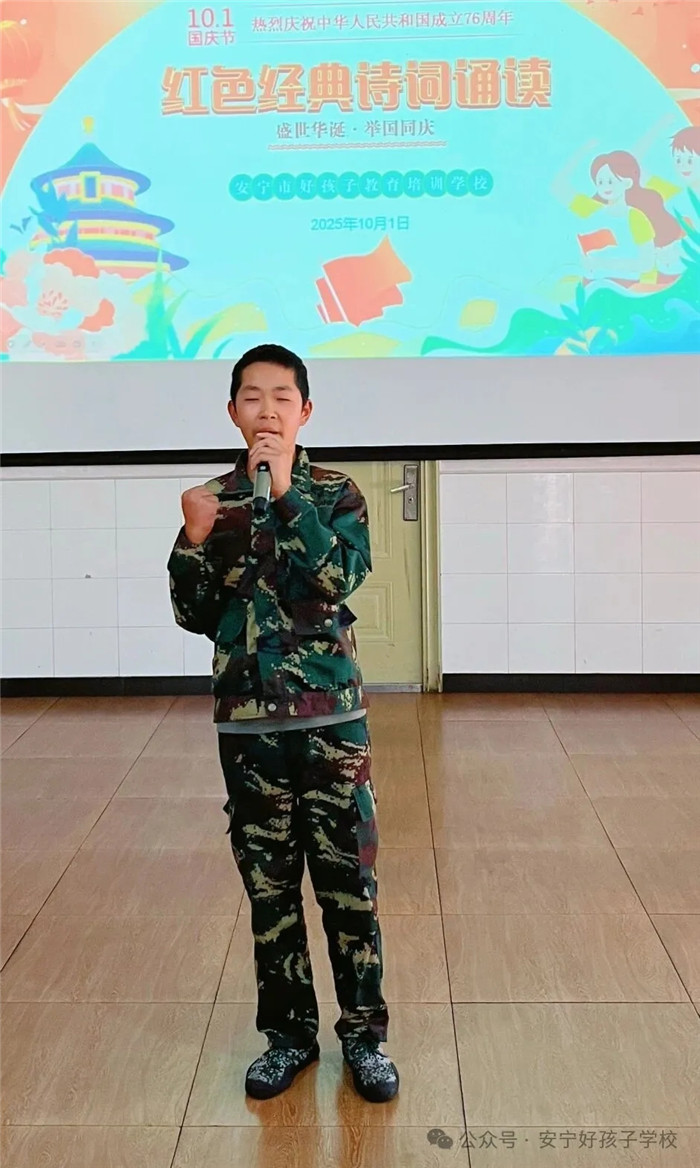 隨后的“紅色經(jīng)典詩(shī)詞誦讀”活動(dòng)同樣精彩紛呈。從《沁園春·雪》的豪邁壯闊,到《七律·長(zhǎng)征》的堅(jiān)韌不屈;從《少年中國(guó)說(shuō)》的朝氣蓬勃,到《我驕傲,我是中國(guó)人》的熱血沸騰...... 同學(xué)們或獨(dú)誦、或合誦,搭配生動(dòng)的肢體語(yǔ)言與情感飽滿的語(yǔ)調(diào),將詩(shī)詞里的紅色故事娓娓道來(lái)。臺(tái)下師生仿佛穿越時(shí)空,在朗朗書(shū)聲中重溫革命歲月,讓紅色文化浸潤(rùn)心靈。