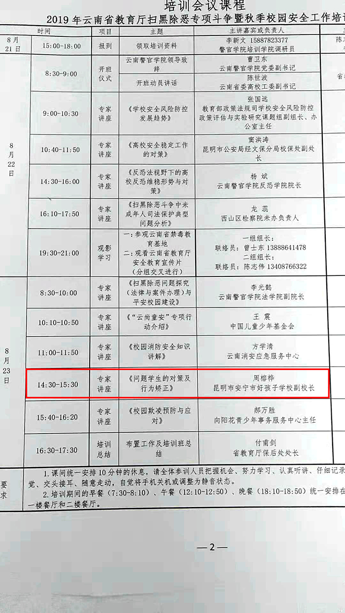 2019年8月22日—23日,云南省教育系統(tǒng)掃黑除惡專項斗爭暨秋季校園安全培訓工作會議在云南警官學院隆重召開,我校受省教育廳的邀請參加了本次會議。